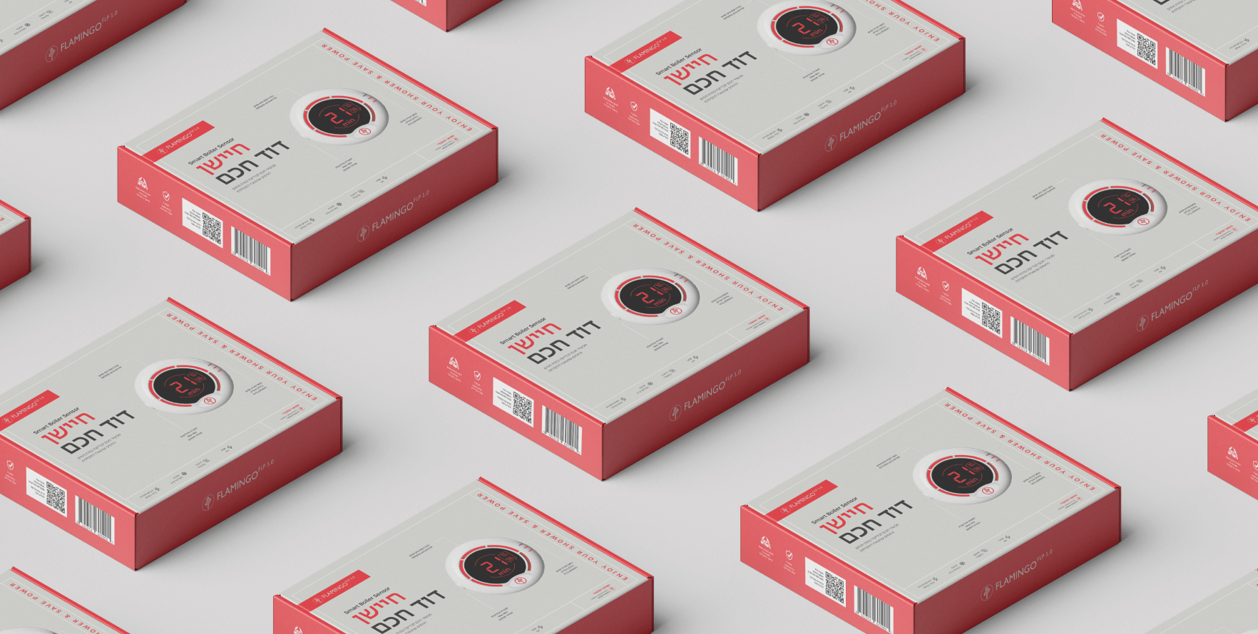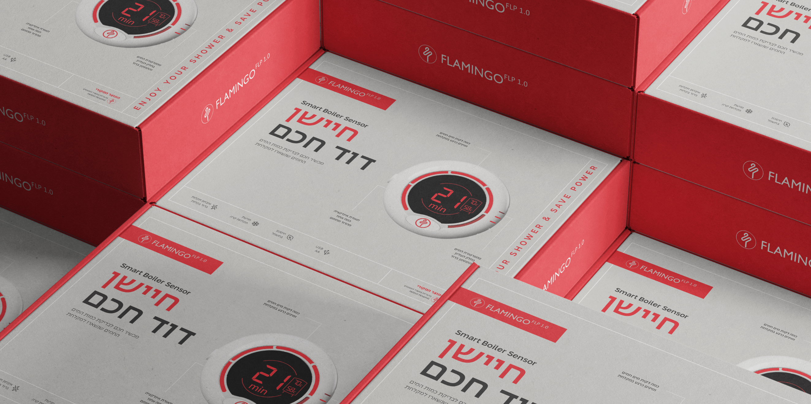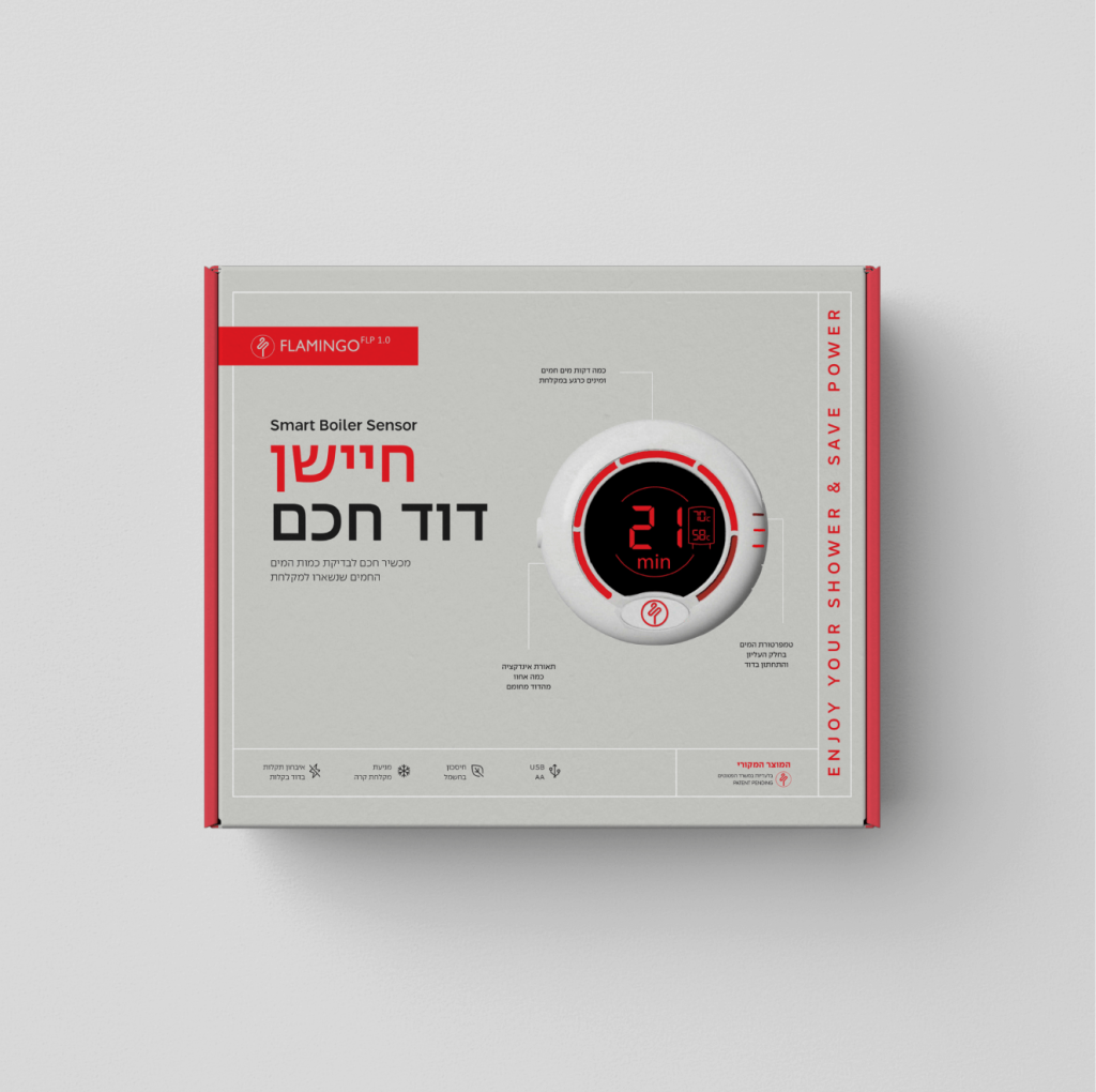 אריזה מעוצבת בסגנון נקי ומדויק. צבעים אפור, שחור ואדום. הצבע האדום מראה את ההמצאה החדשנית וההנאה המובטחת מהמכשיר.