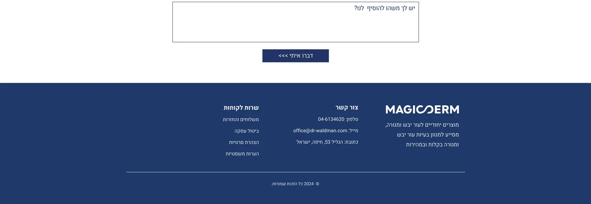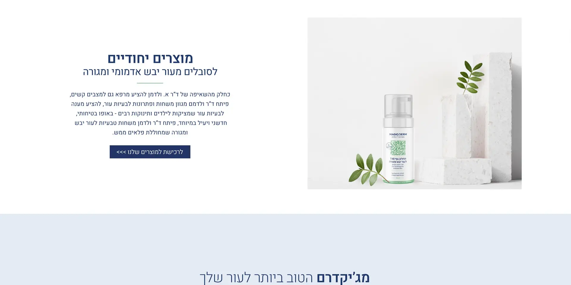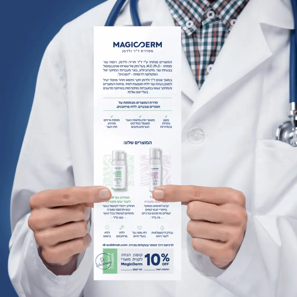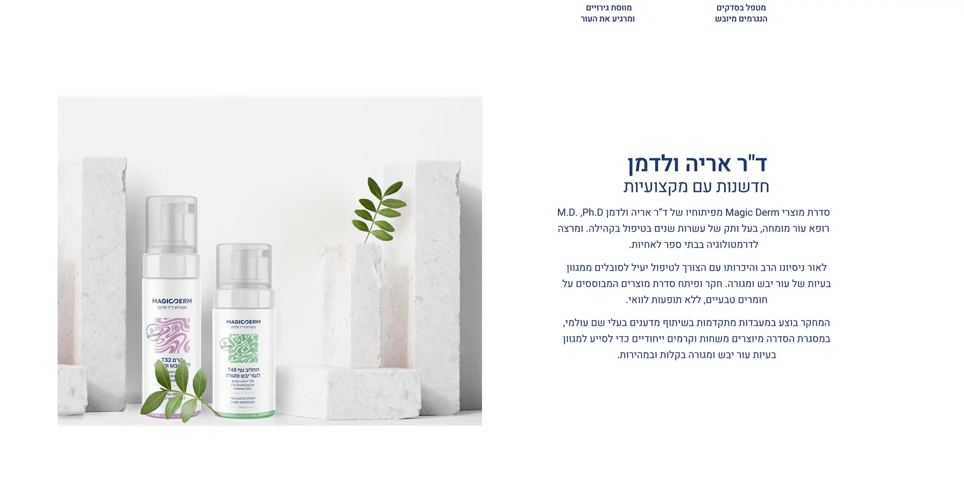 סדרת מוצרי מג'יקדרם מפיתוחיו של ד”ר אריה ולדמן M.D. ,Ph.D רופא עור מומחה, בעל ותק של עשרות שנים בטיפול בקהילה. לאור ניסיונו הרב והיכרותו עם הצורך לטיפול יעיל לסובלים ממגוון בעיות של עור יבש ומגורה. חקר ופיתח סדרת מוצרים המבוססים על חומרים טבעיים, ללא תופעות לוואי.